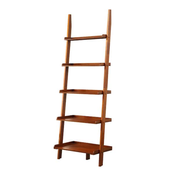 Convenience Concepts 72 in. Cherry Wood 5-shelf Ladder Bookcase with Open Back 8043391