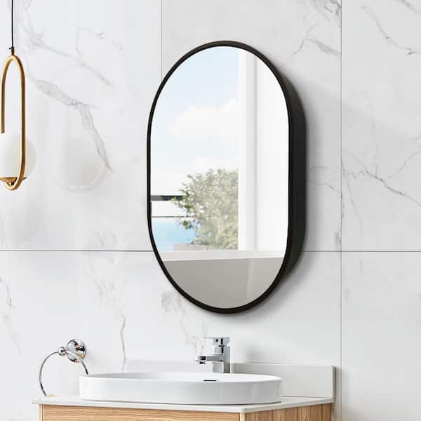 EAKYHOM 21 in. W x 31 in. H Oval Black Aluminum Surface Mount Medicine Cabinet with Mirror EMC2131-RC