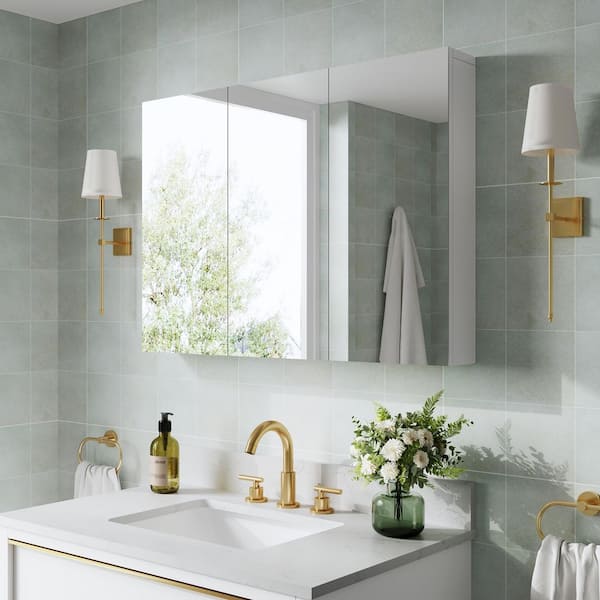 FORCLOVER 3-Door 36 in. W x 25.5 in. H Rectangular White MDF Steel Recessed or Surface Mount Medicine Cabinet with Mirror HYFE-67577