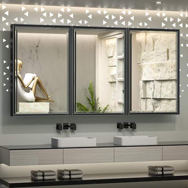 KeonJinn 60 in. W x 30 in. H Rectangular Black Metal Framed Beveled Surface Mount/Recessed Medicine Cabinet with Mirror hd-JGFJ15276bk